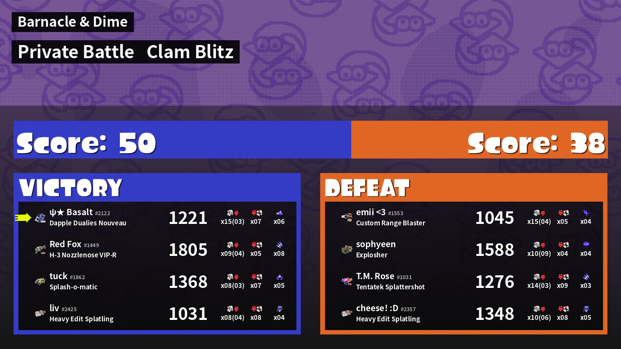 | Mode | Clam Blitz - Private Battle | ||