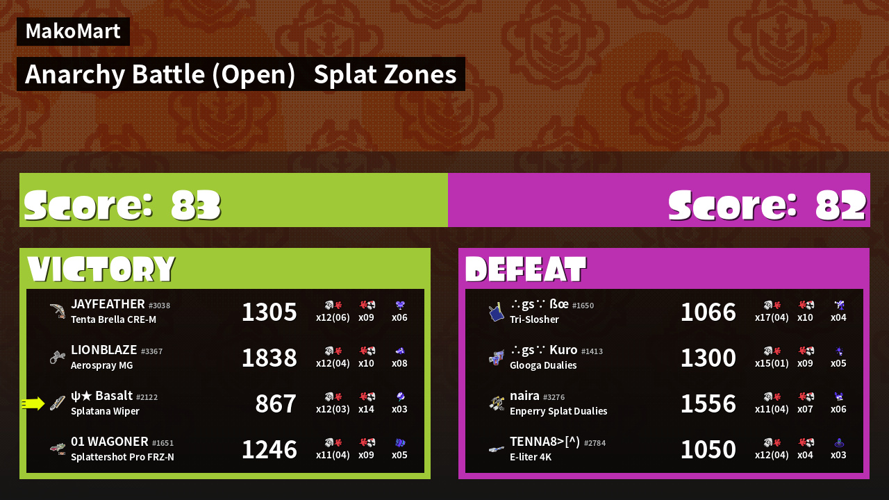 | Mode | Splat Zones - Anarchy Battle (Open) | ||