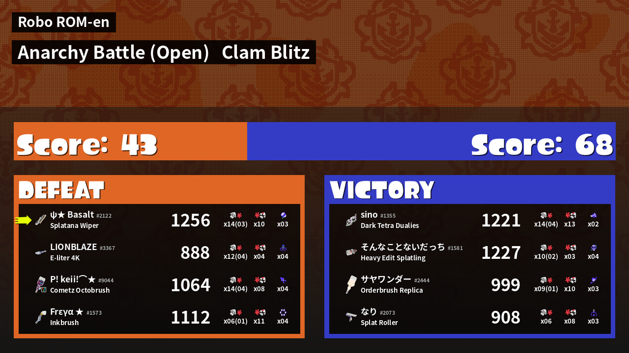 | Mode | Clam Blitz - Anarchy Battle (Open) | ||