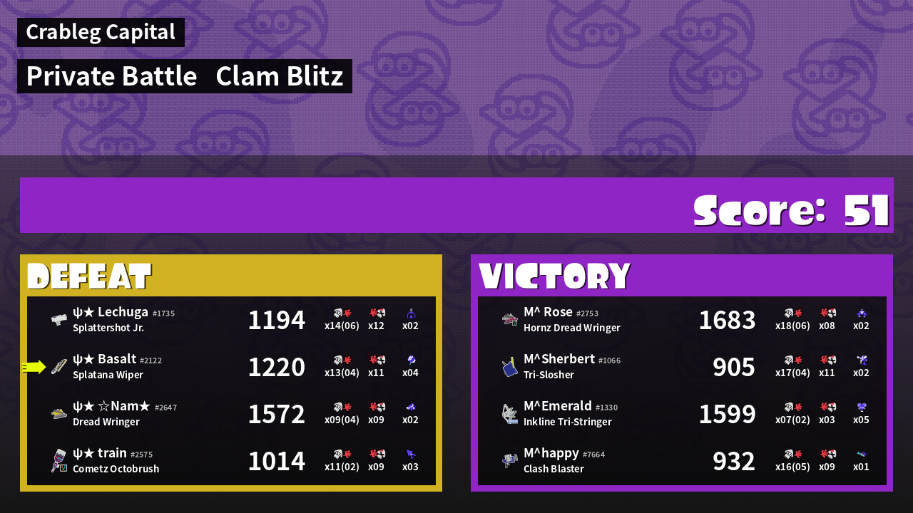 | Medals | #1 Popular Target #1 Enemy Splatter #1 Clam Stopper | ||
