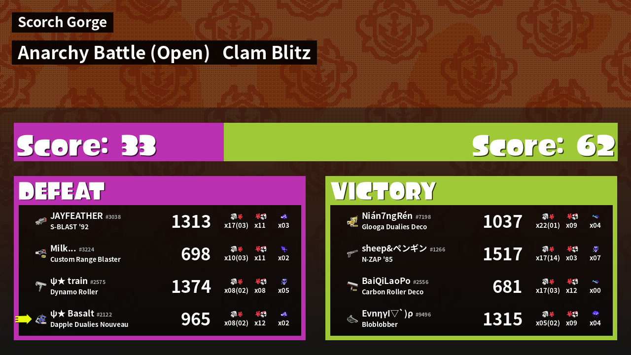 | Mode | Clam Blitz - Anarchy Battle (Open) | ||