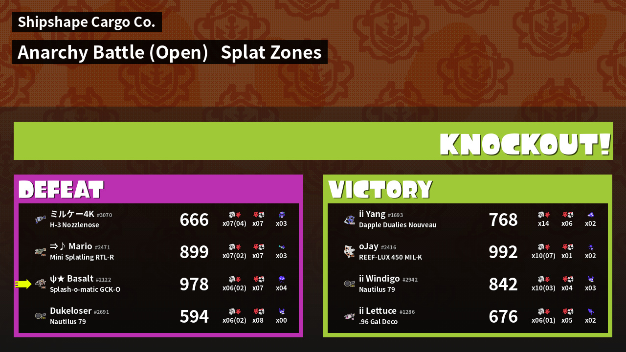 | Mode | Splat Zones - Anarchy Battle (Open) | ||