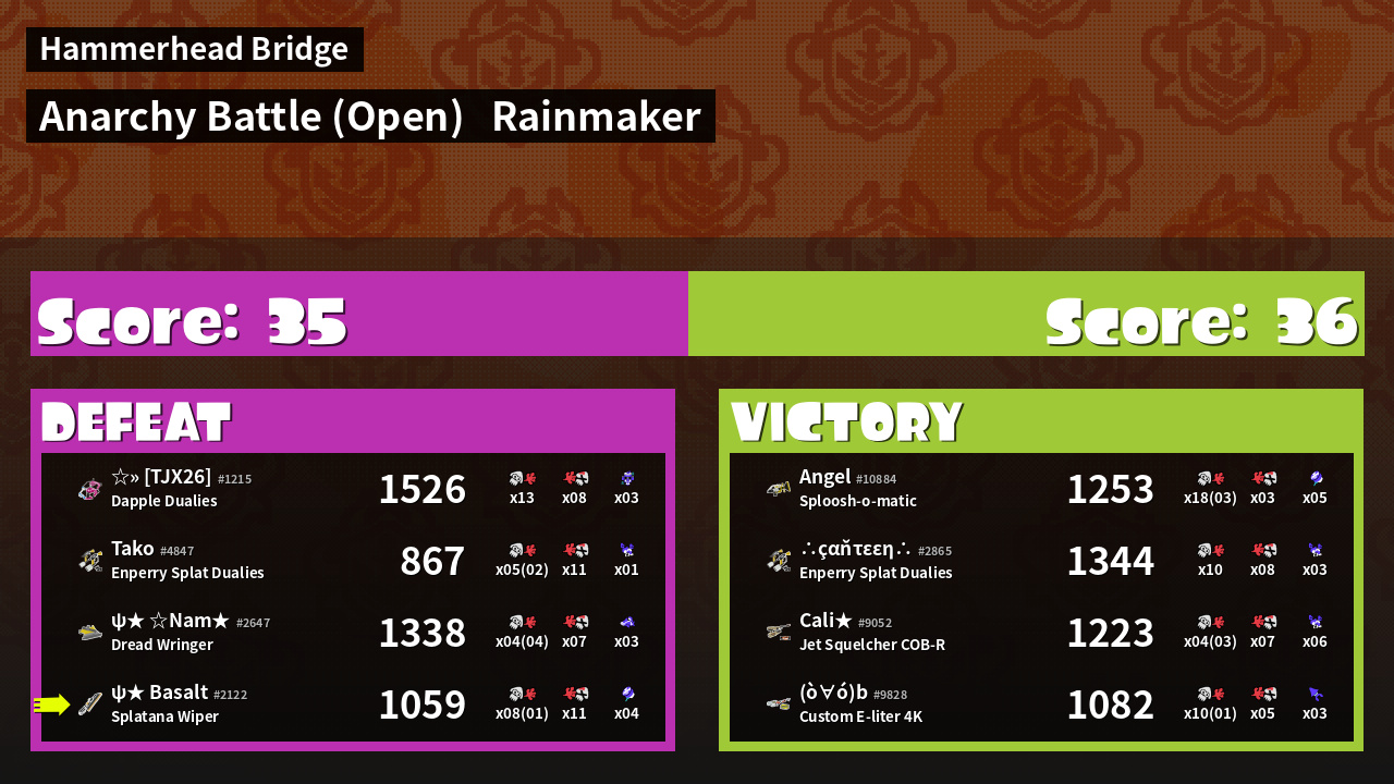 | Mode | Rainmaker - Anarchy Battle (Open) | ||