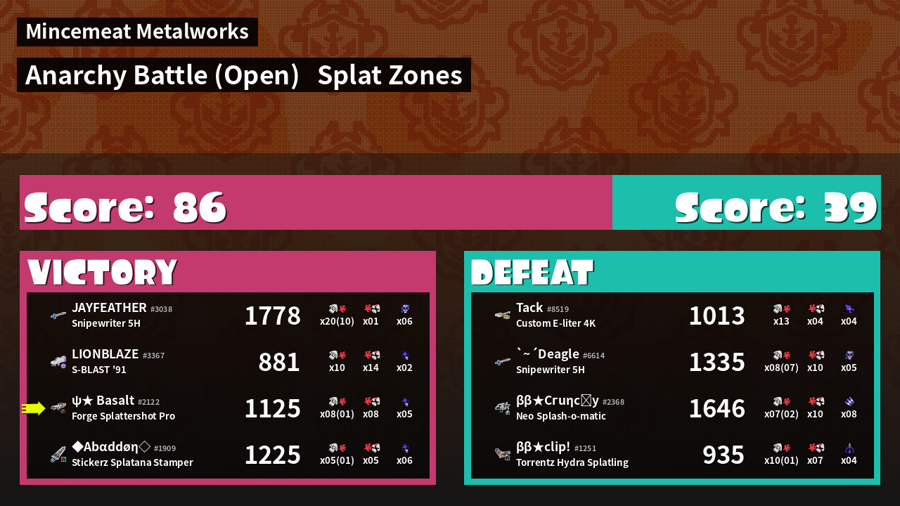 | Mode | Splat Zones - Anarchy Battle (Open) | ||