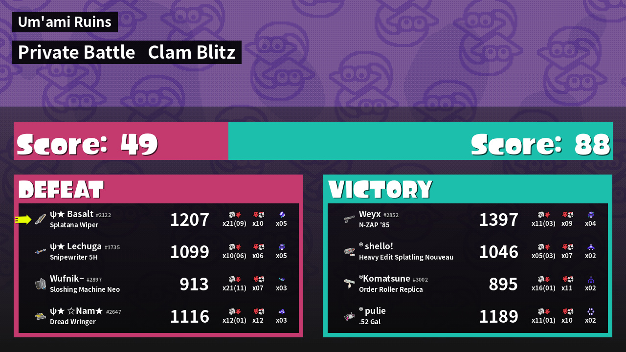 | Mode | Clam Blitz - Private Battle | ||