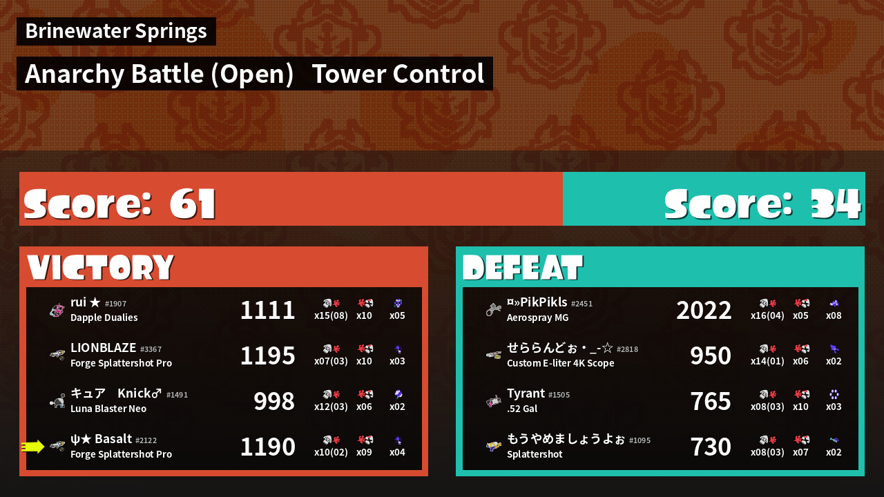 | Mode | Tower Control - Anarchy Battle (Open) | ||