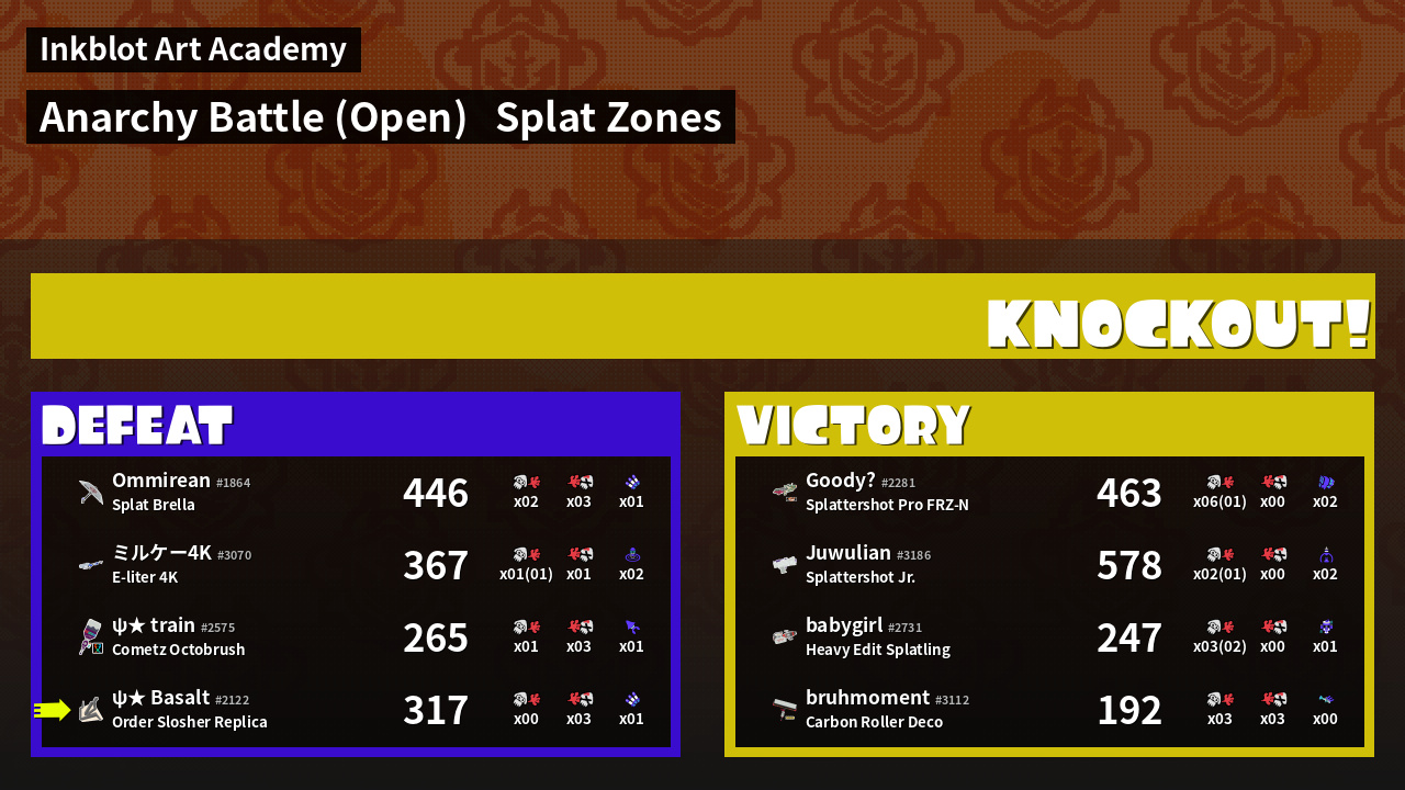 | Mode | Splat Zones - Anarchy Battle (Open) | ||