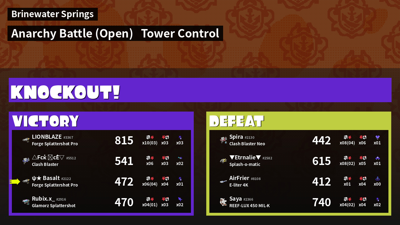 | Mode | Tower Control - Anarchy Battle (Open) | ||