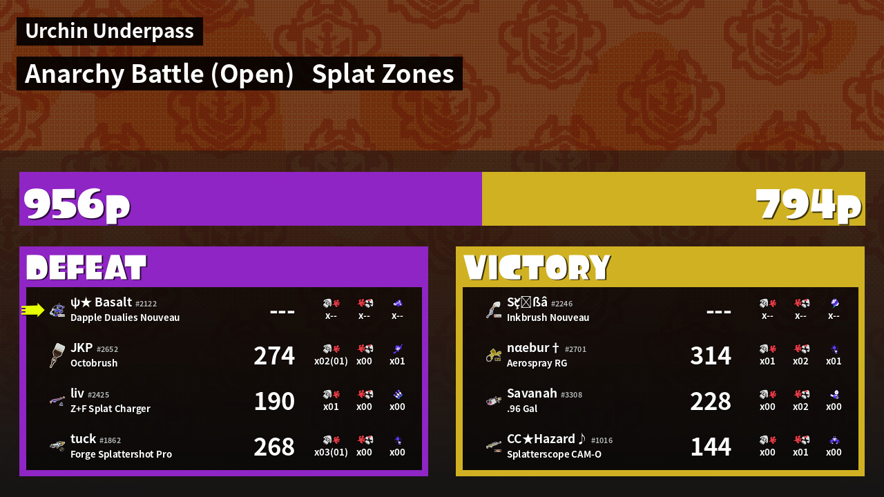 | Mode | Splat Zones - Anarchy Battle (Open) | ||
