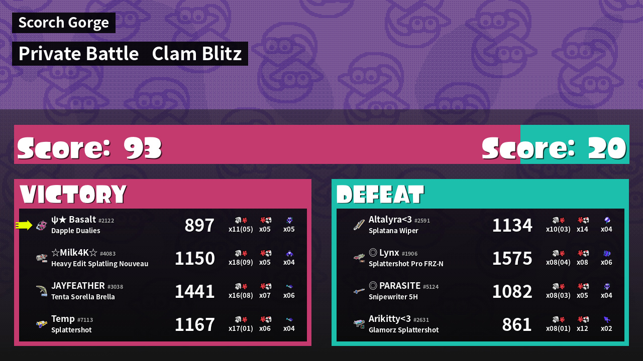 | Mode | Clam Blitz - Private Battle | ||