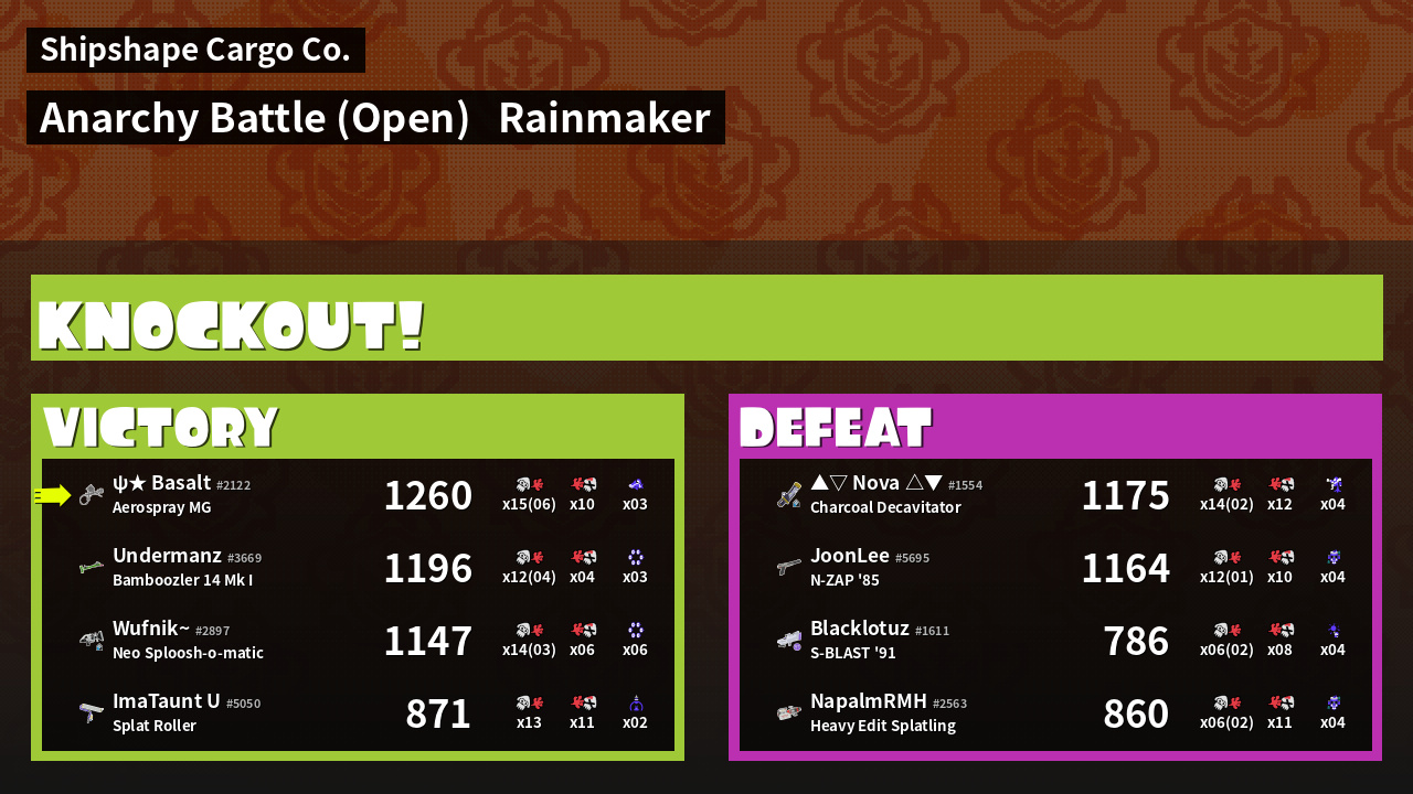 | Mode | Rainmaker - Anarchy Battle (Open) | ||