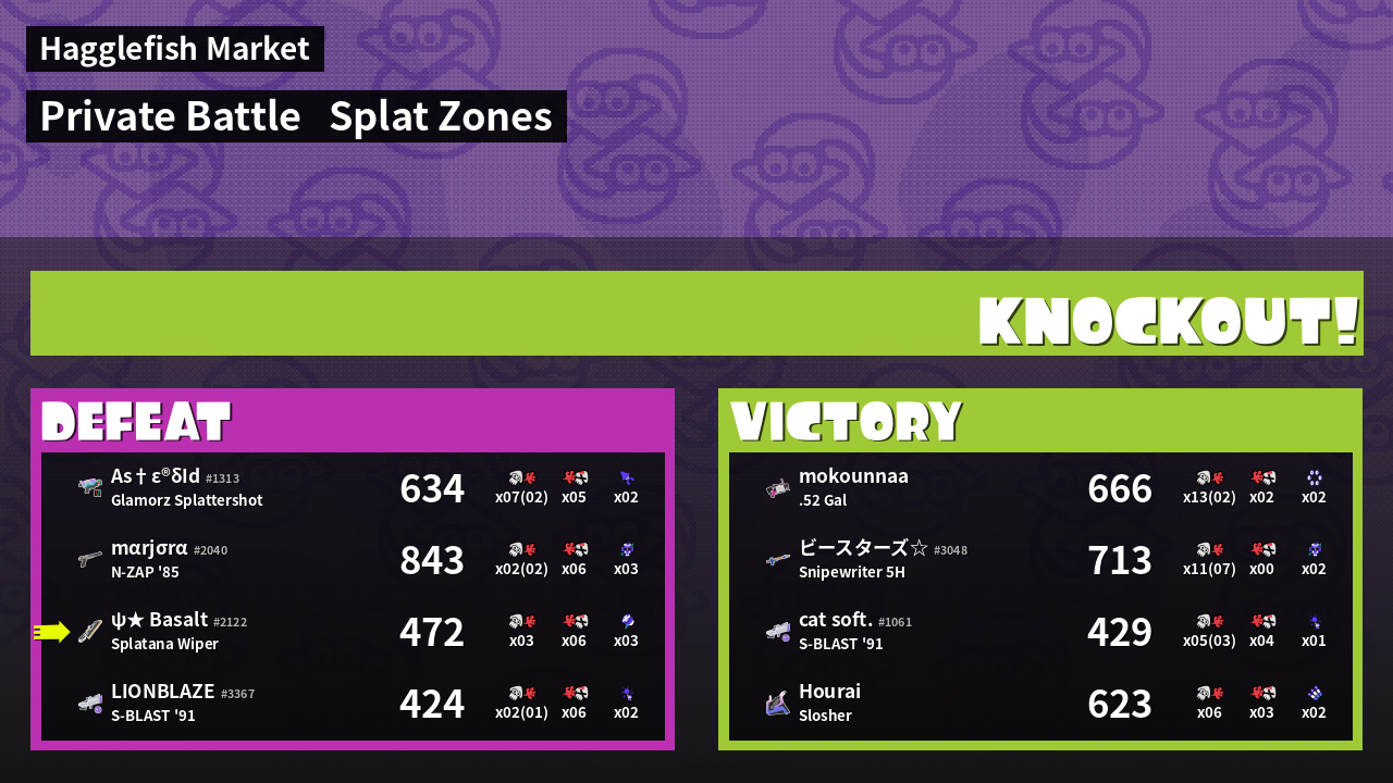 | Mode | Splat Zones - Private Battle | ||