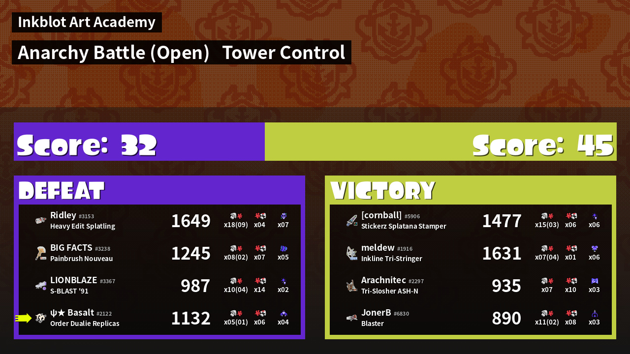 | Mode | Tower Control - Anarchy Battle (Open) | ||