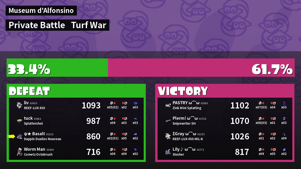| Mode | Turf War - Private Battle | ||