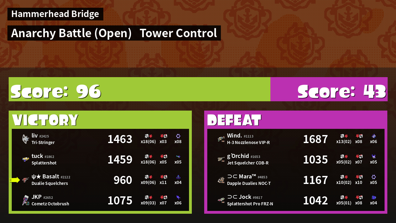 | Medals | #1 Splat Assister #1 Wave Breaker User | ||