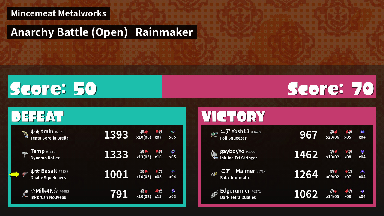| Mode | Rainmaker - Anarchy Battle (Open) | ||