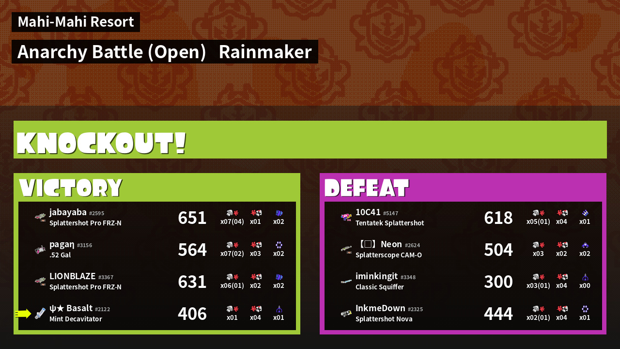 | Mode | Rainmaker - Anarchy Battle (Open) | ||