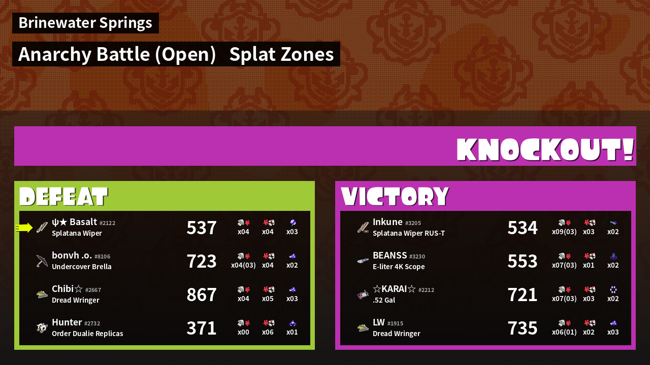 | Mode | Splat Zones - Anarchy Battle (Open) | ||