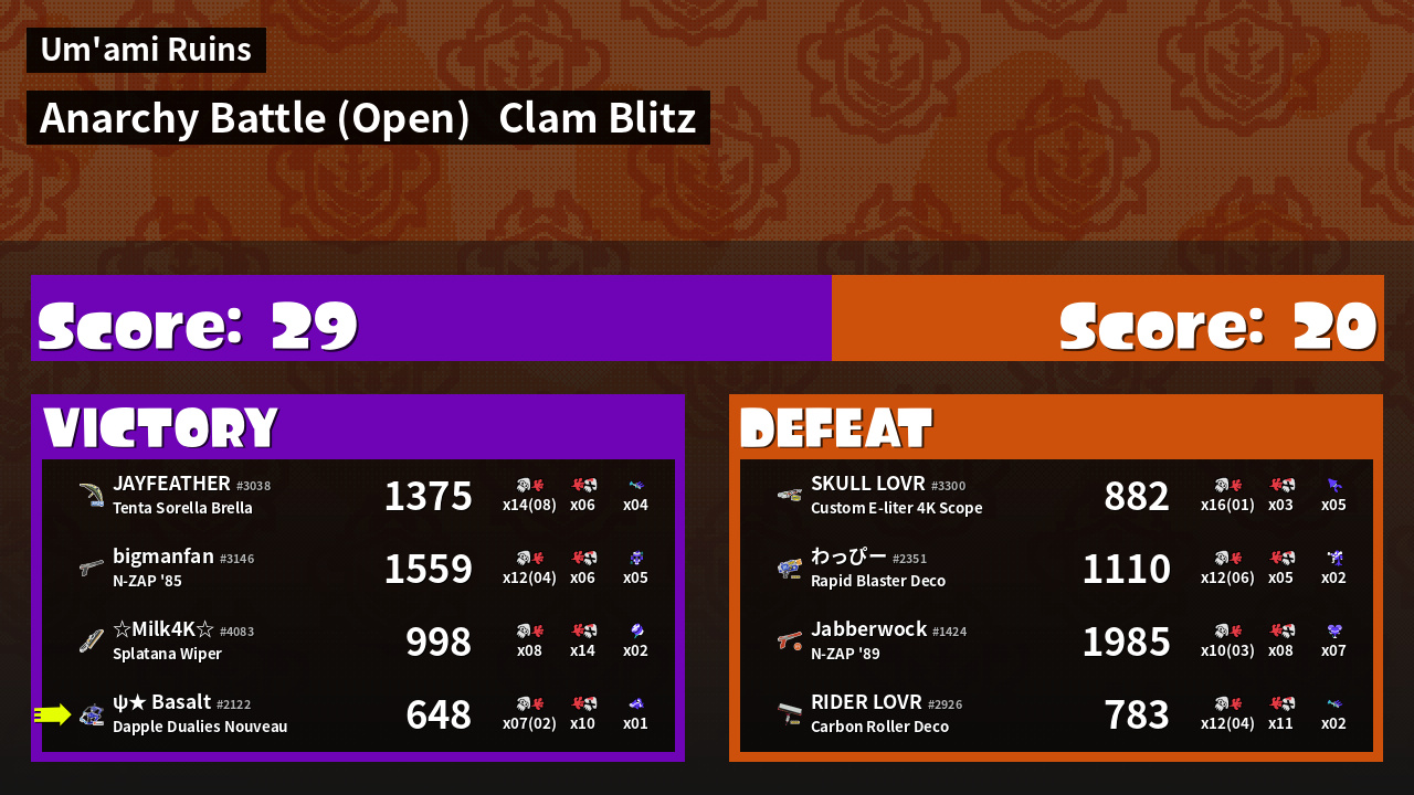 | Mode | Clam Blitz - Anarchy Battle (Open) | ||