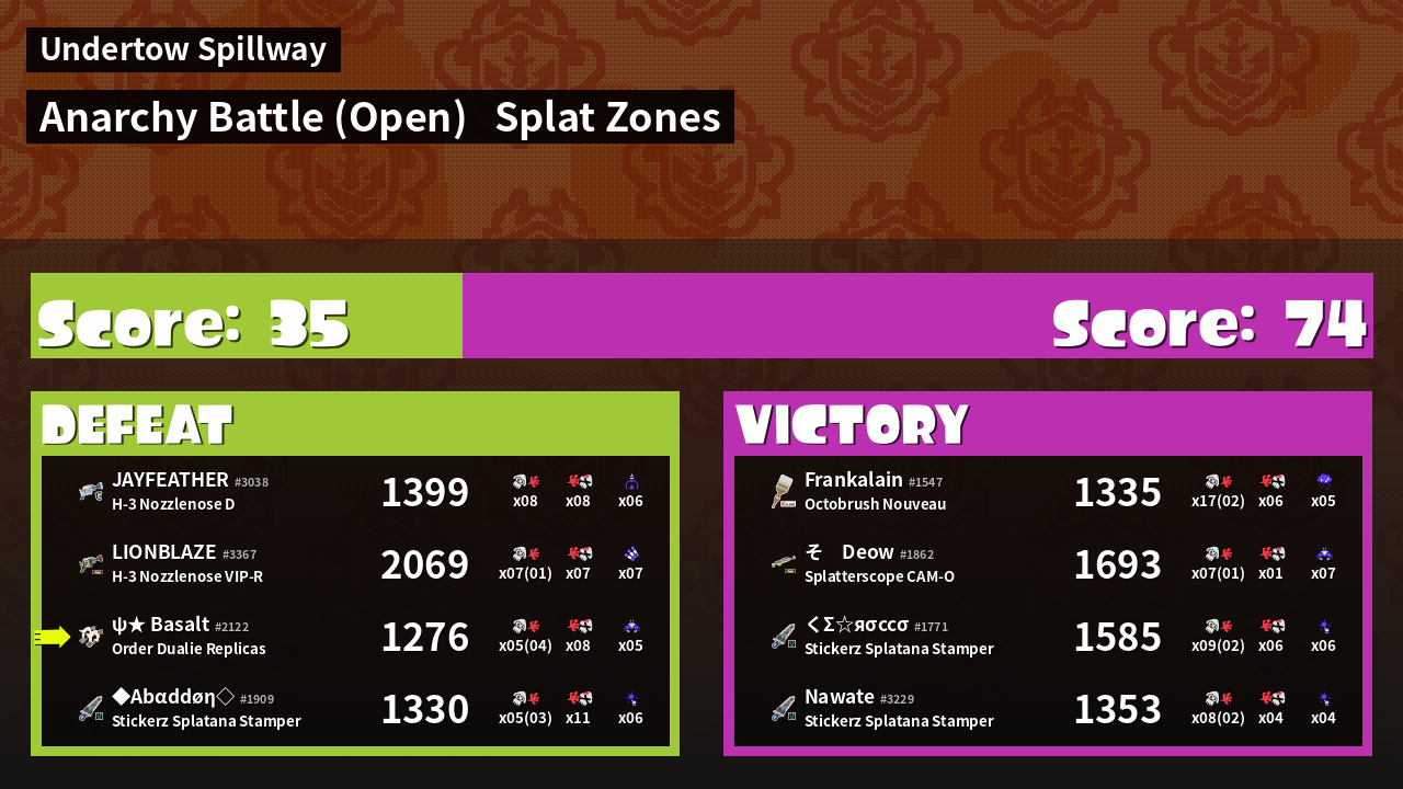 | Mode | Splat Zones - Anarchy Battle (Open) | ||