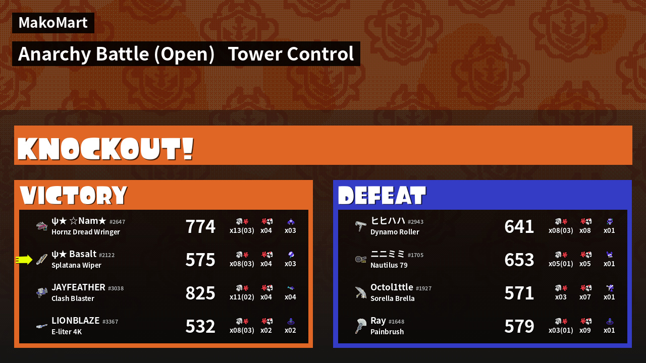 | Mode | Tower Control - Anarchy Battle (Open) | ||