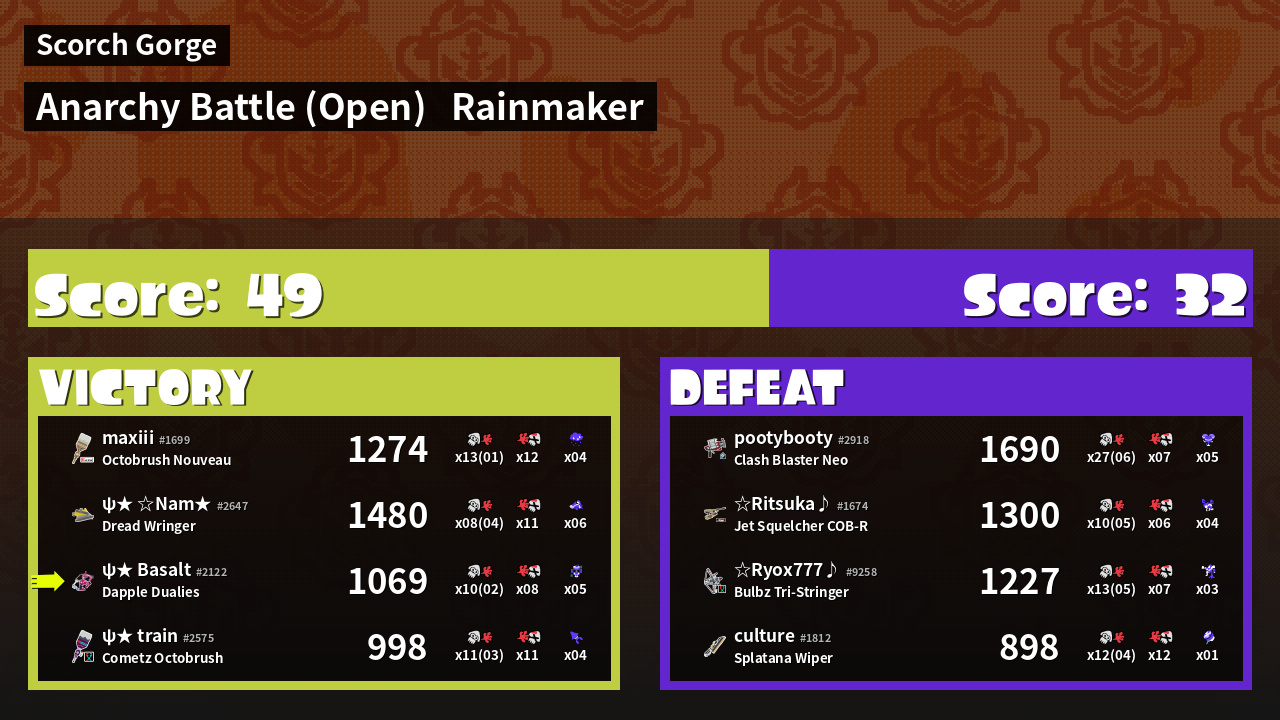 | Mode | Rainmaker - Anarchy Battle (Open) | ||