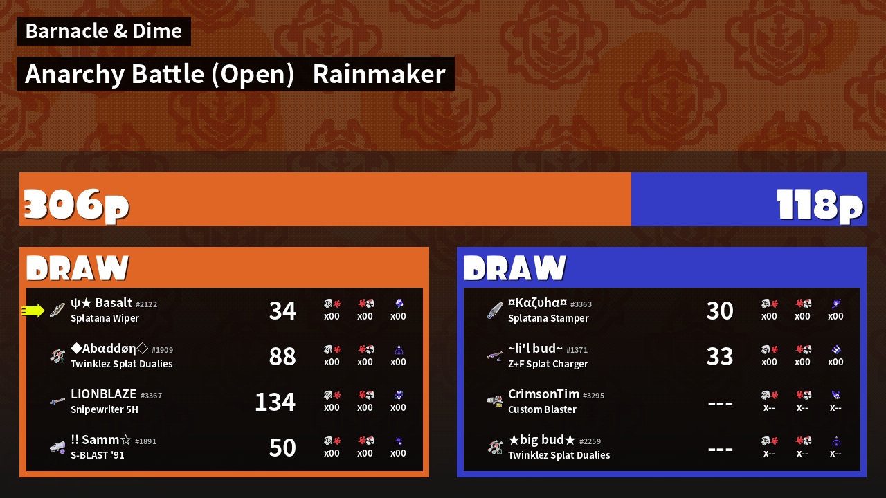 | Mode | Rainmaker - Anarchy Battle (Open) | ||