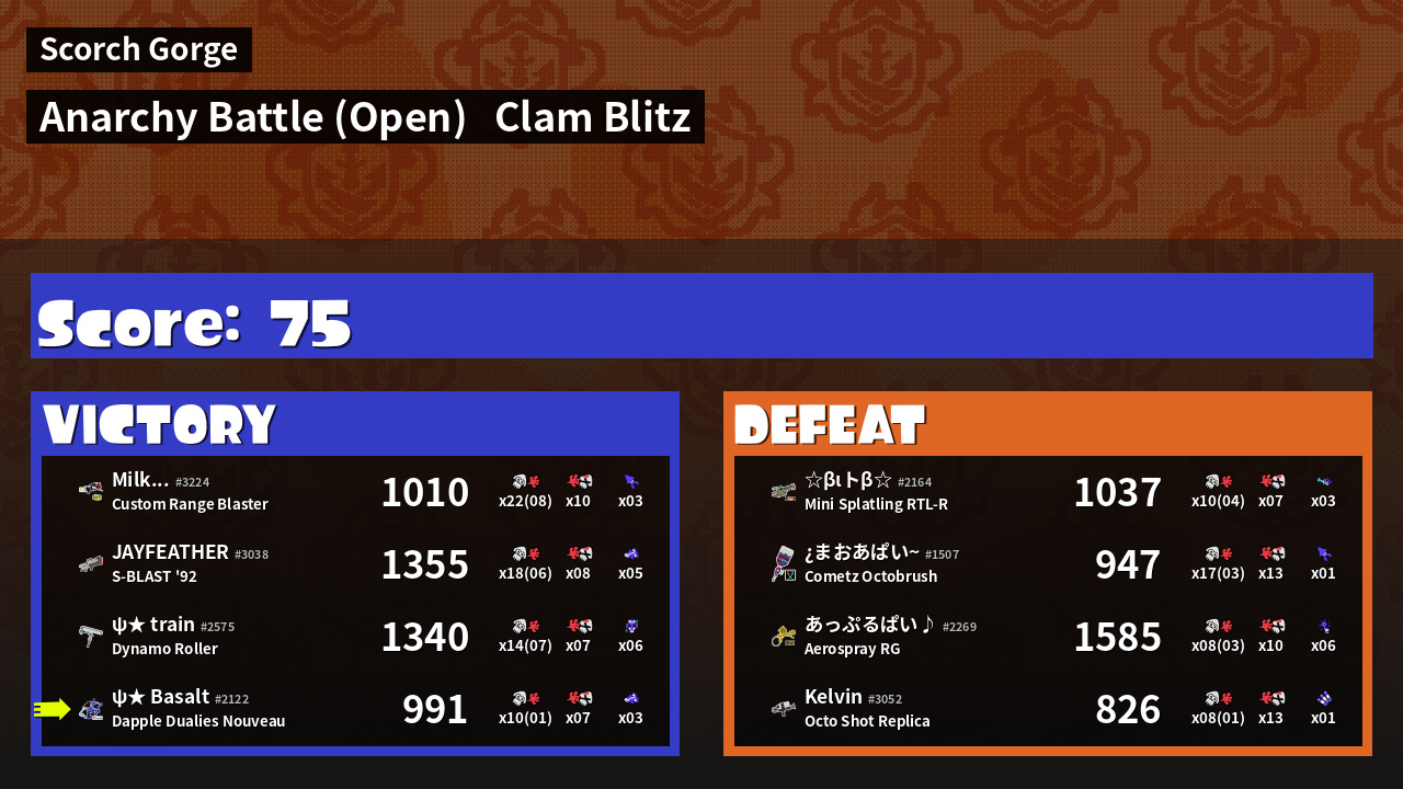 | Mode | Clam Blitz - Anarchy Battle (Open) | ||