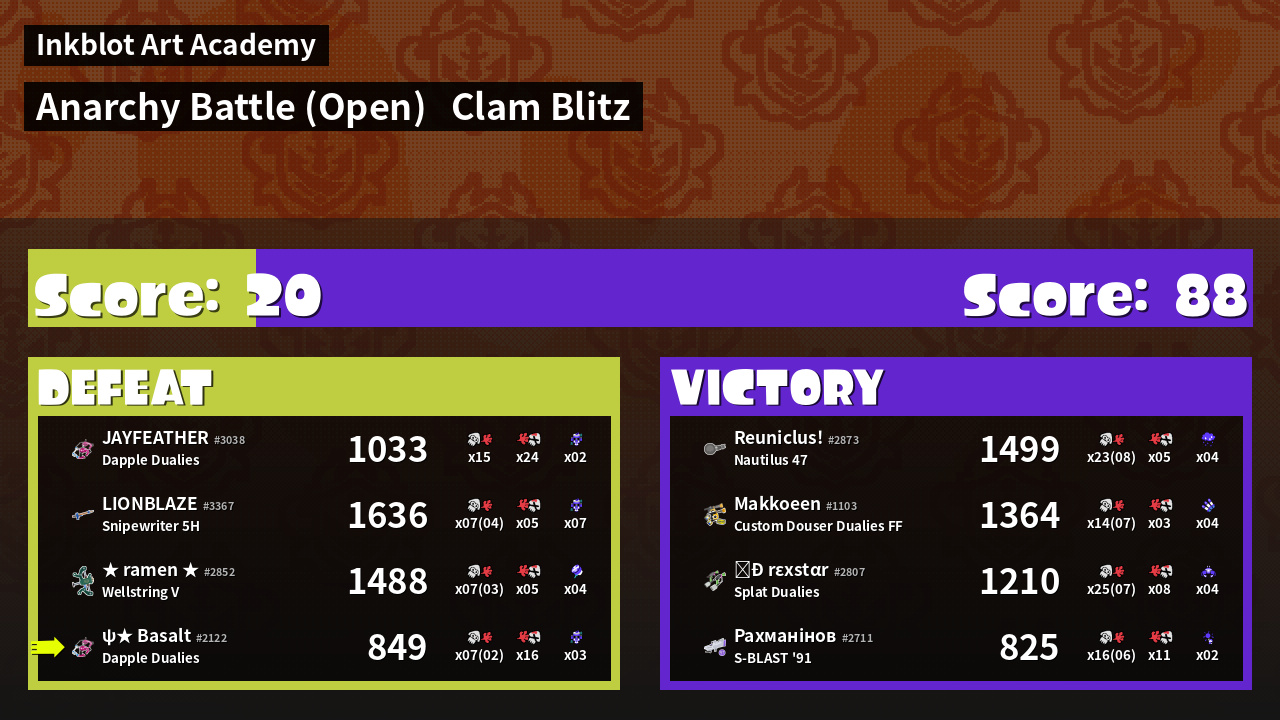 | Mode | Clam Blitz - Anarchy Battle (Open) | ||