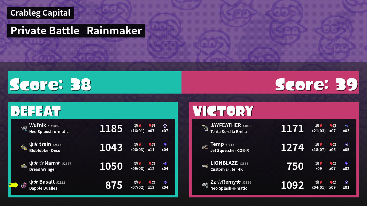 | Mode | Rainmaker - Private Battle | ||