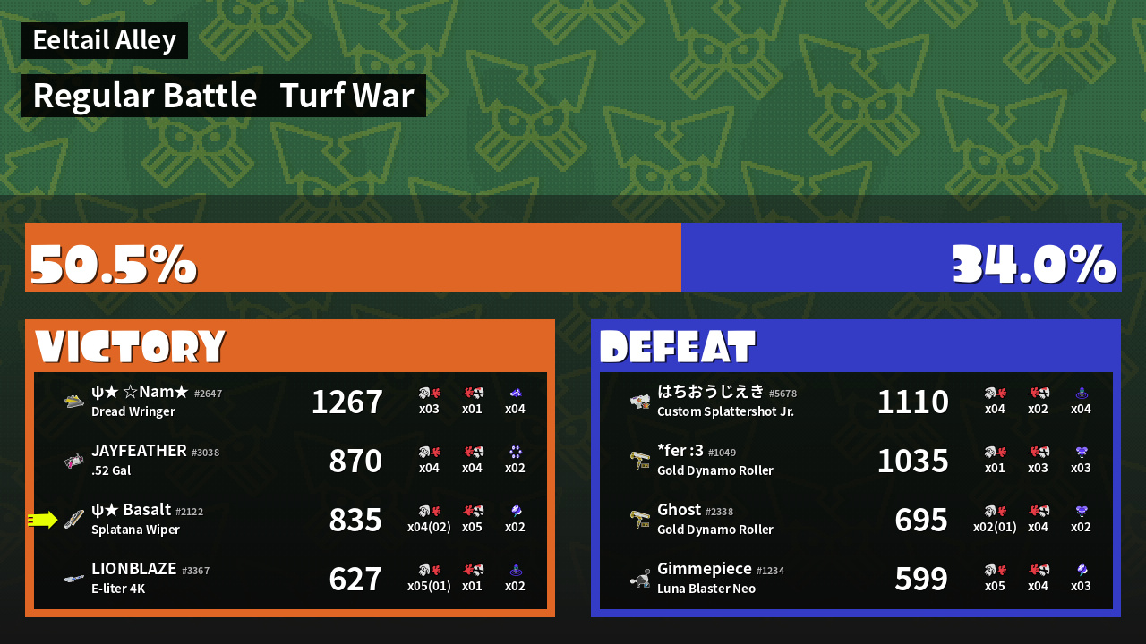 | Medals | #1 Splat Assister #1 Ground Traveler #1 Ultra Stamp User | ||
