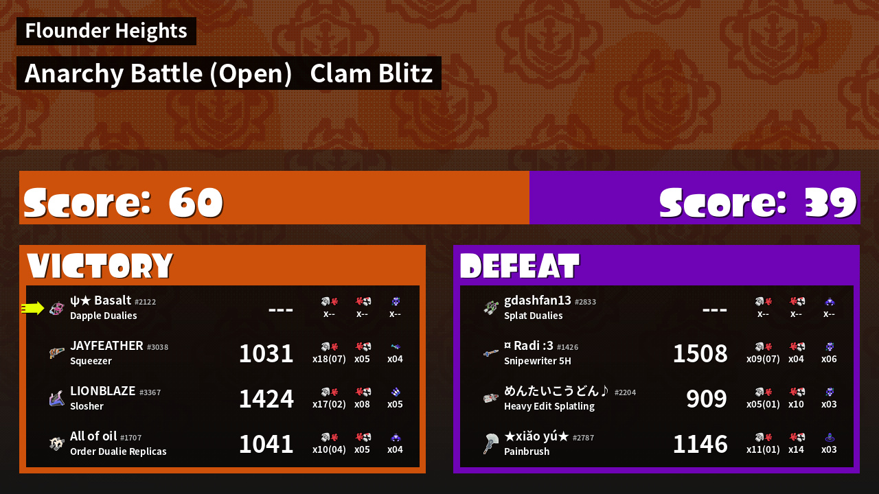 | Mode | Clam Blitz - Anarchy Battle (Open) | ||