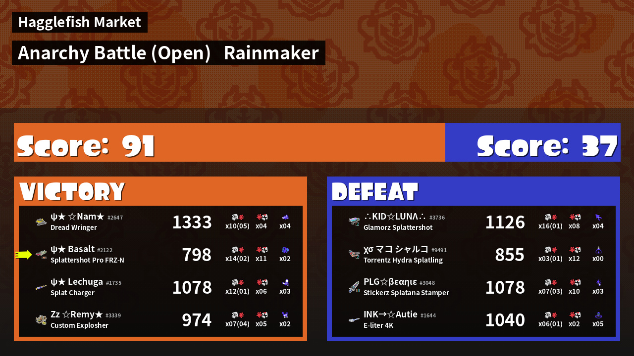 | Mode | Rainmaker - Anarchy Battle (Open) | ||