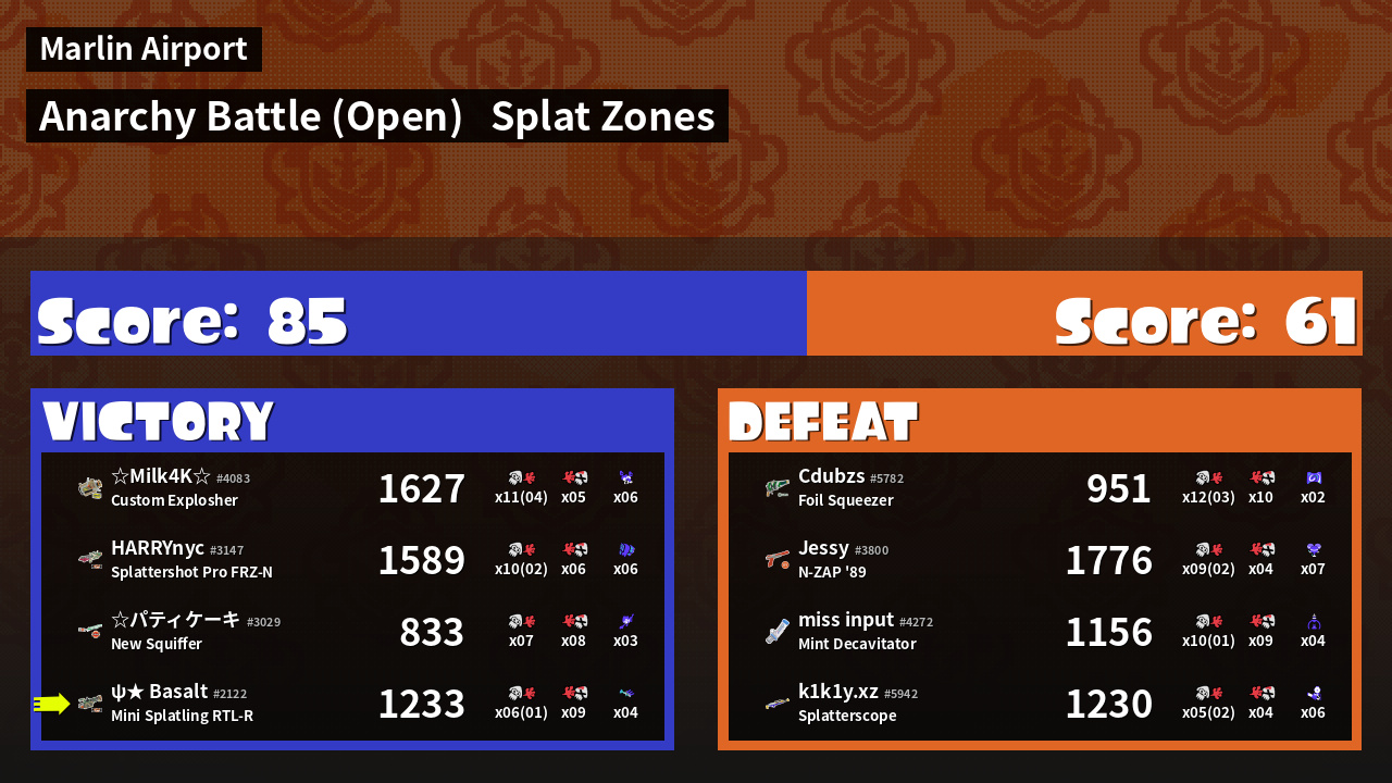 | Mode | Splat Zones - Anarchy Battle (Open) | ||