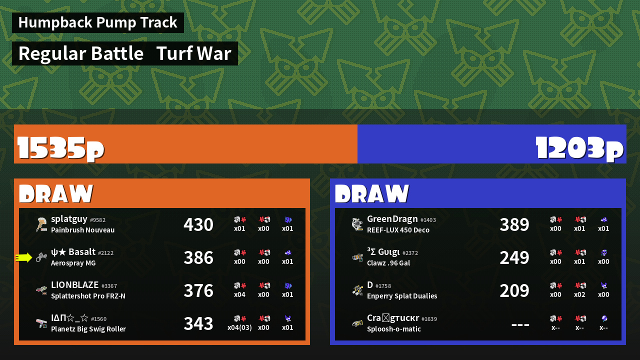 | Weapon | Aerospray MG ( Fizzy Bomb / Reefslider) | ||