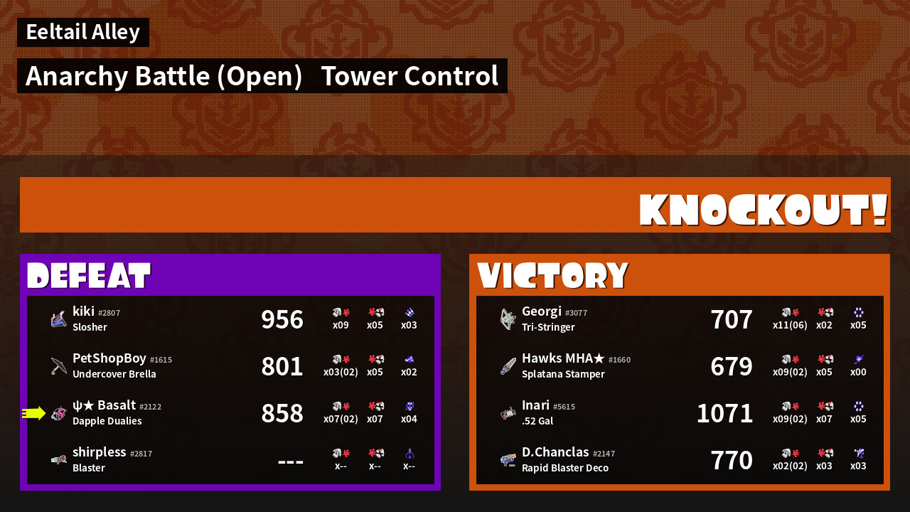 | Medals | #1 Splat Assister #1 Tower Stopper #1 Ground Traveler | ||