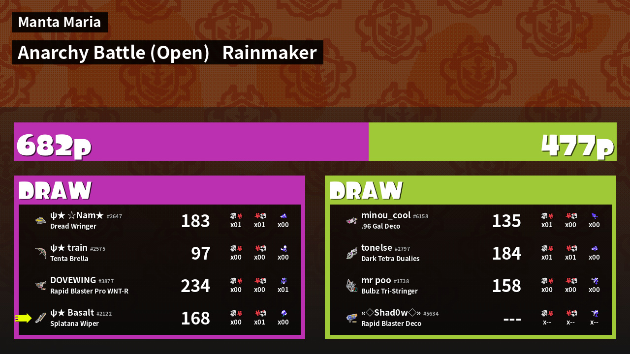 | Mode | Rainmaker - Anarchy Battle (Open) | ||