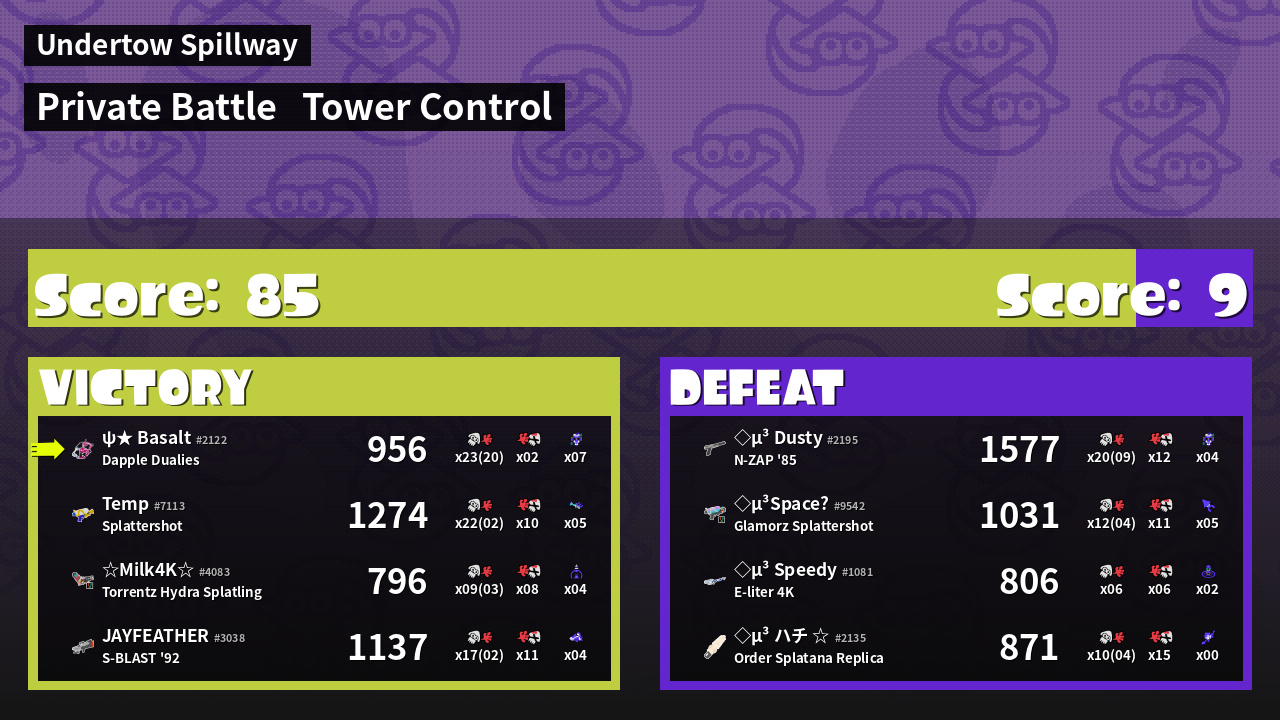 | Medals | #1 Overall Splatter #1 Super Jump Spot #1 Splat Assister | ||