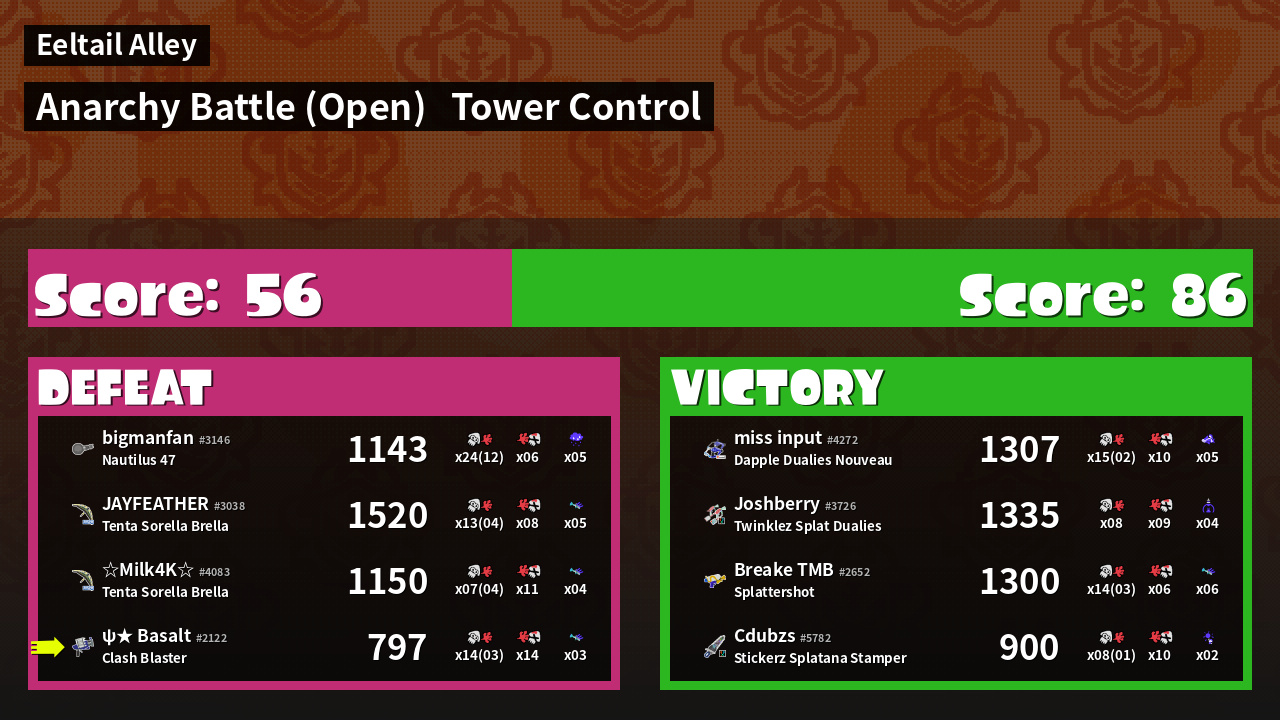 | Mode | Tower Control - Anarchy Battle (Open) | ||