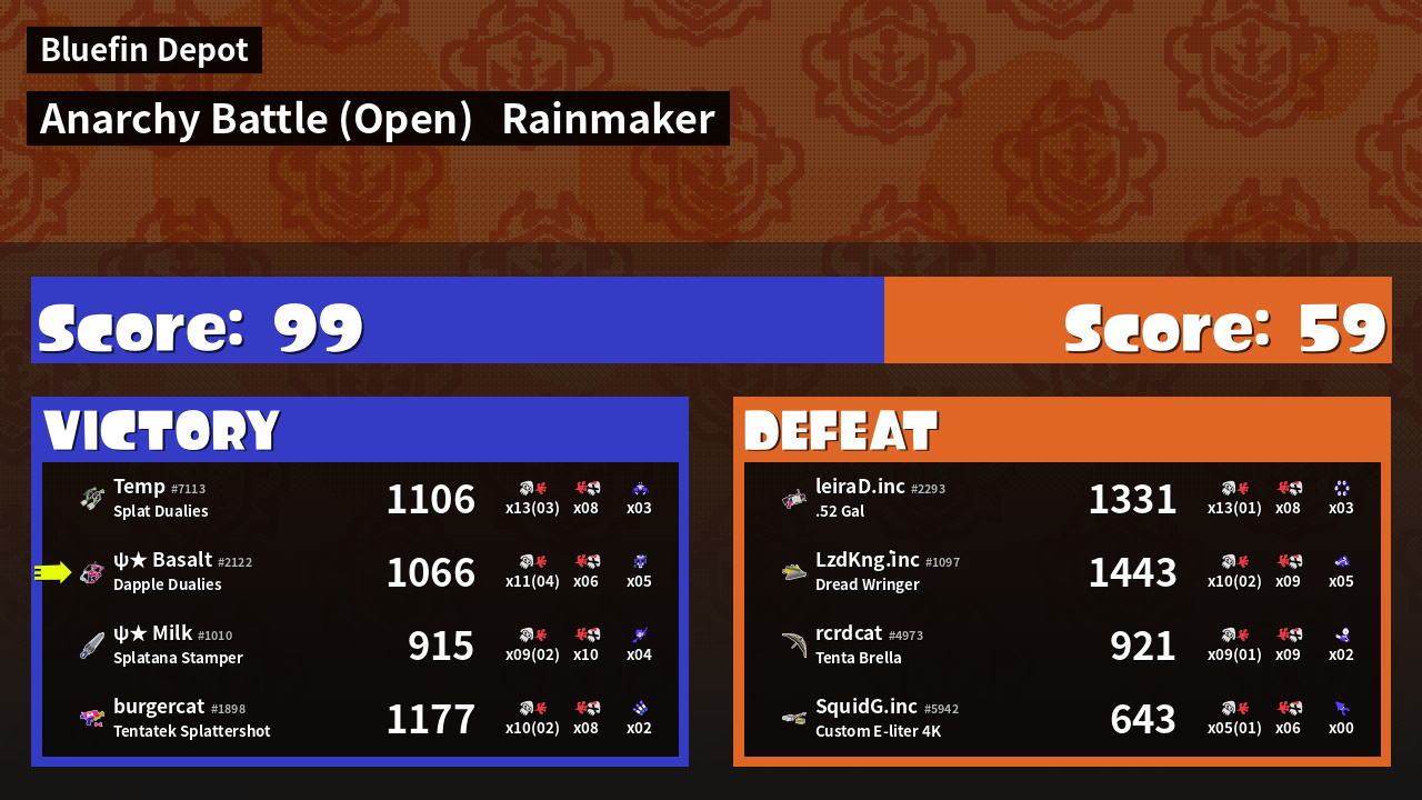 | Mode | Rainmaker - Anarchy Battle (Open) | ||
