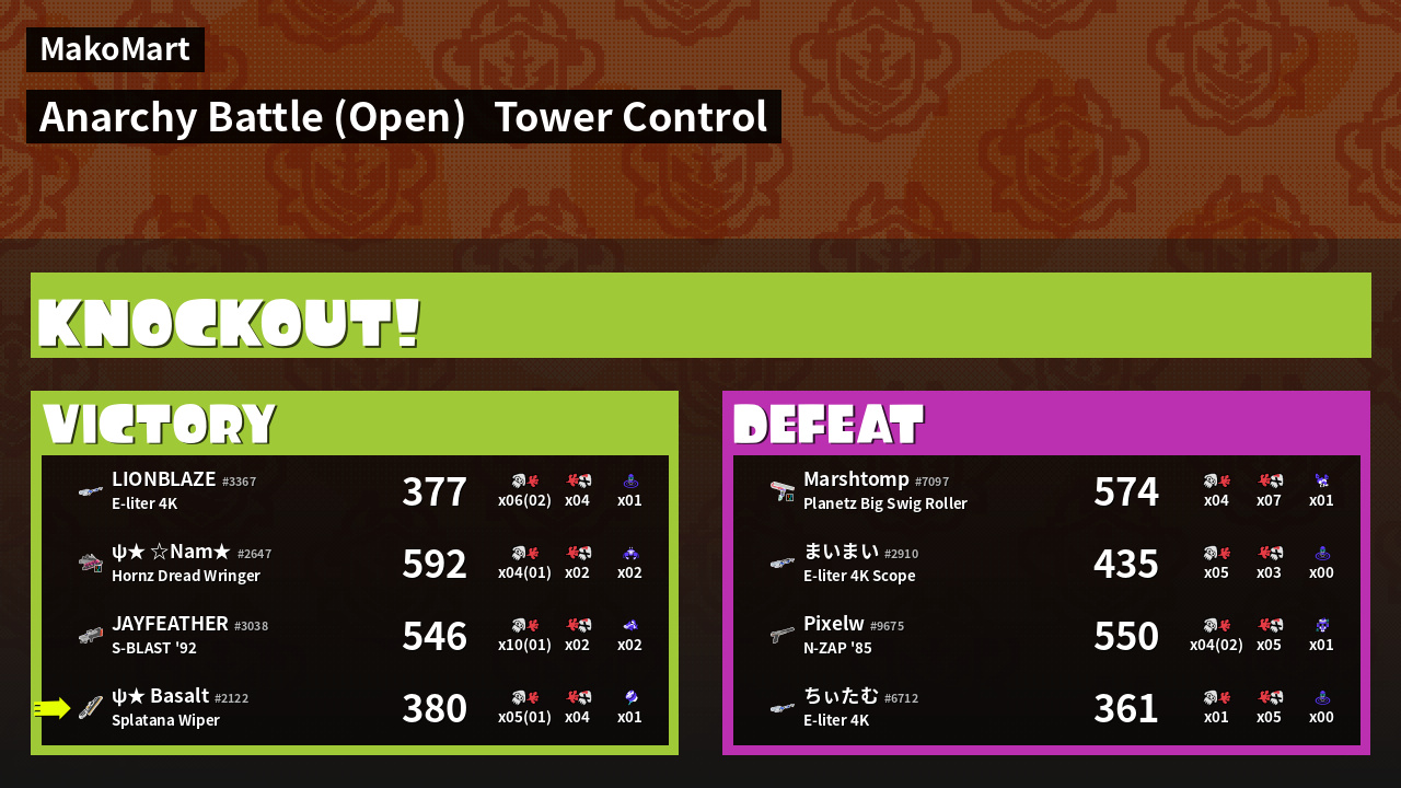 | Mode | Tower Control - Anarchy Battle (Open) | ||