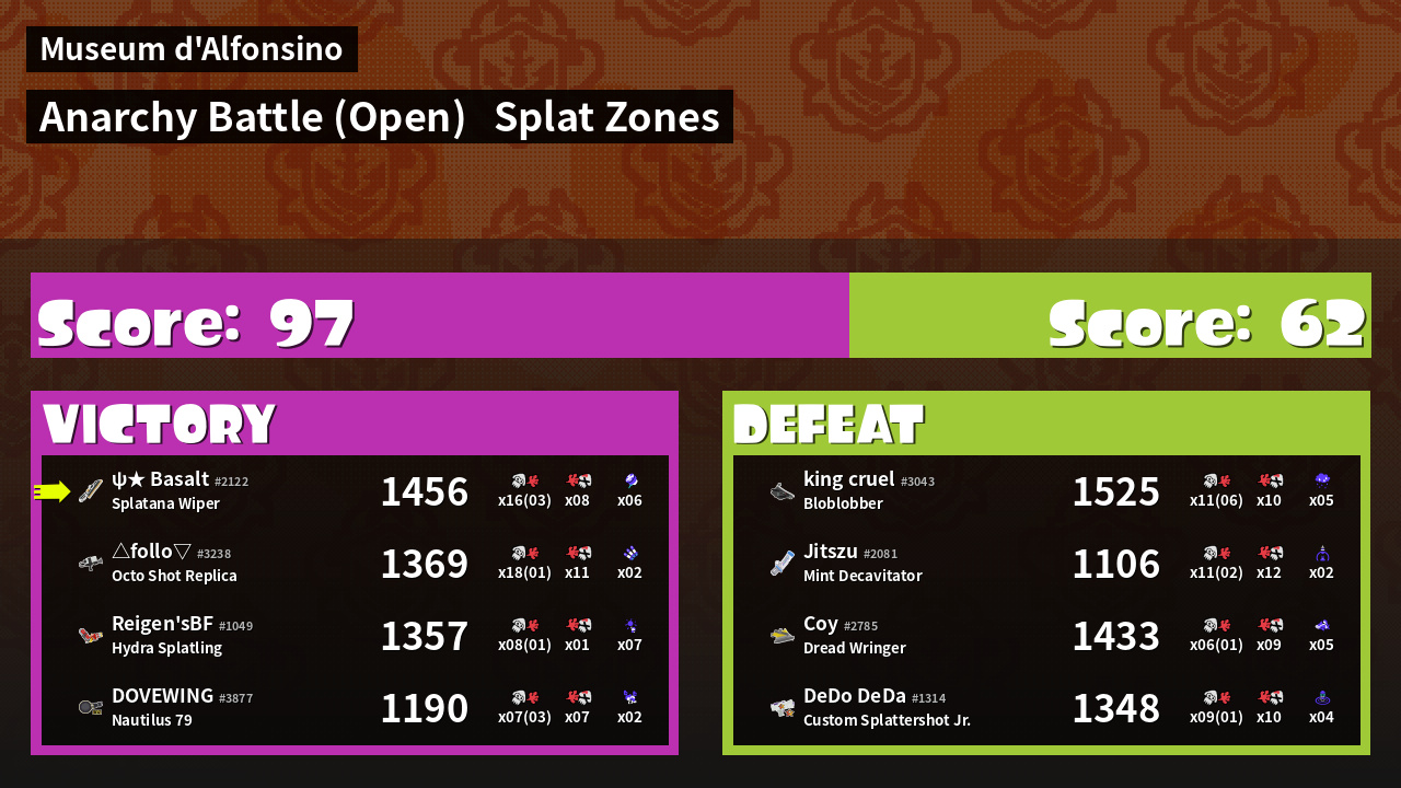 | Mode | Splat Zones - Anarchy Battle (Open) | ||