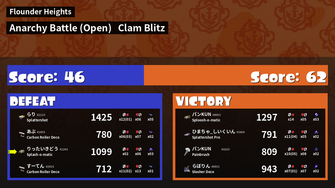 | Mode | Clam Blitz - Anarchy Battle (Open) | ||