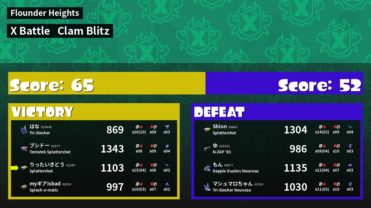 | Mode | Clam Blitz - X Battle | ||
