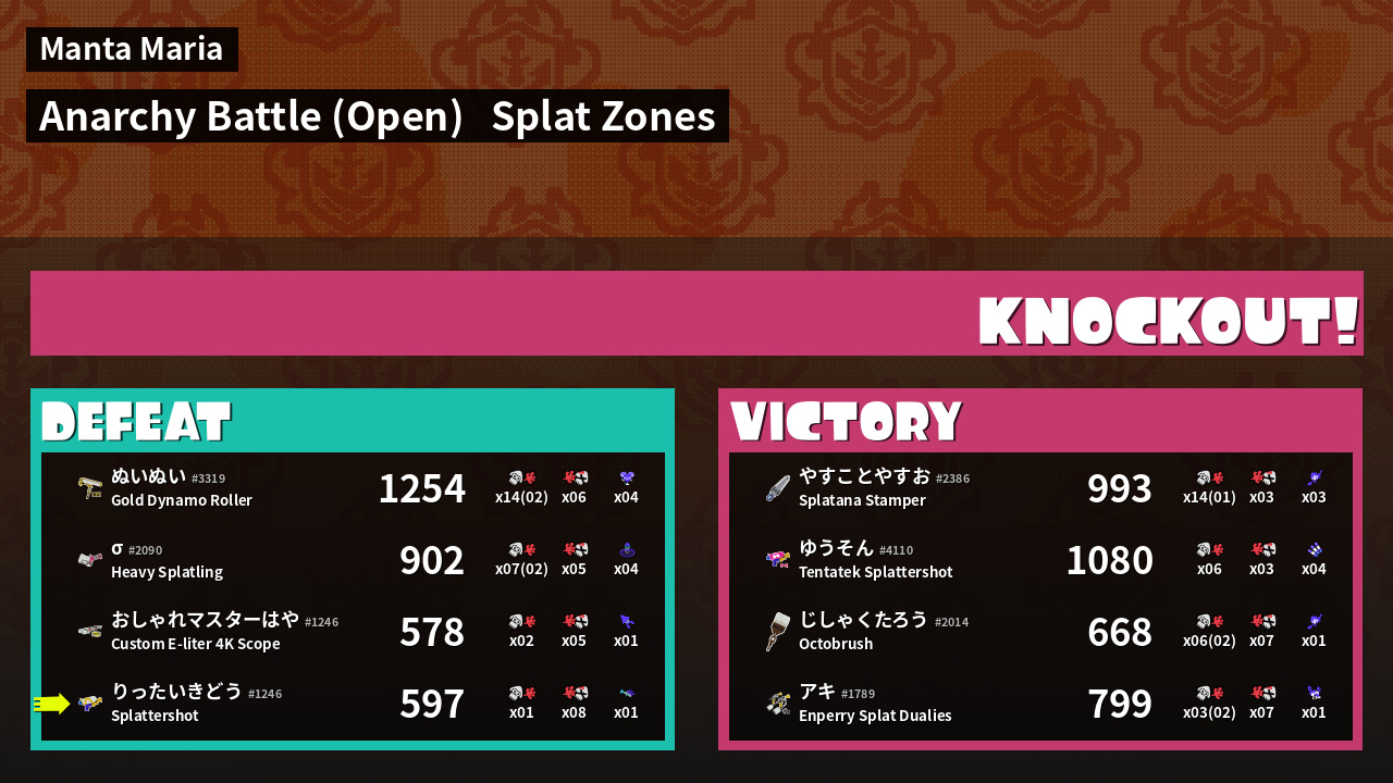 | Mode | Splat Zones - Anarchy Battle (Open) | ||