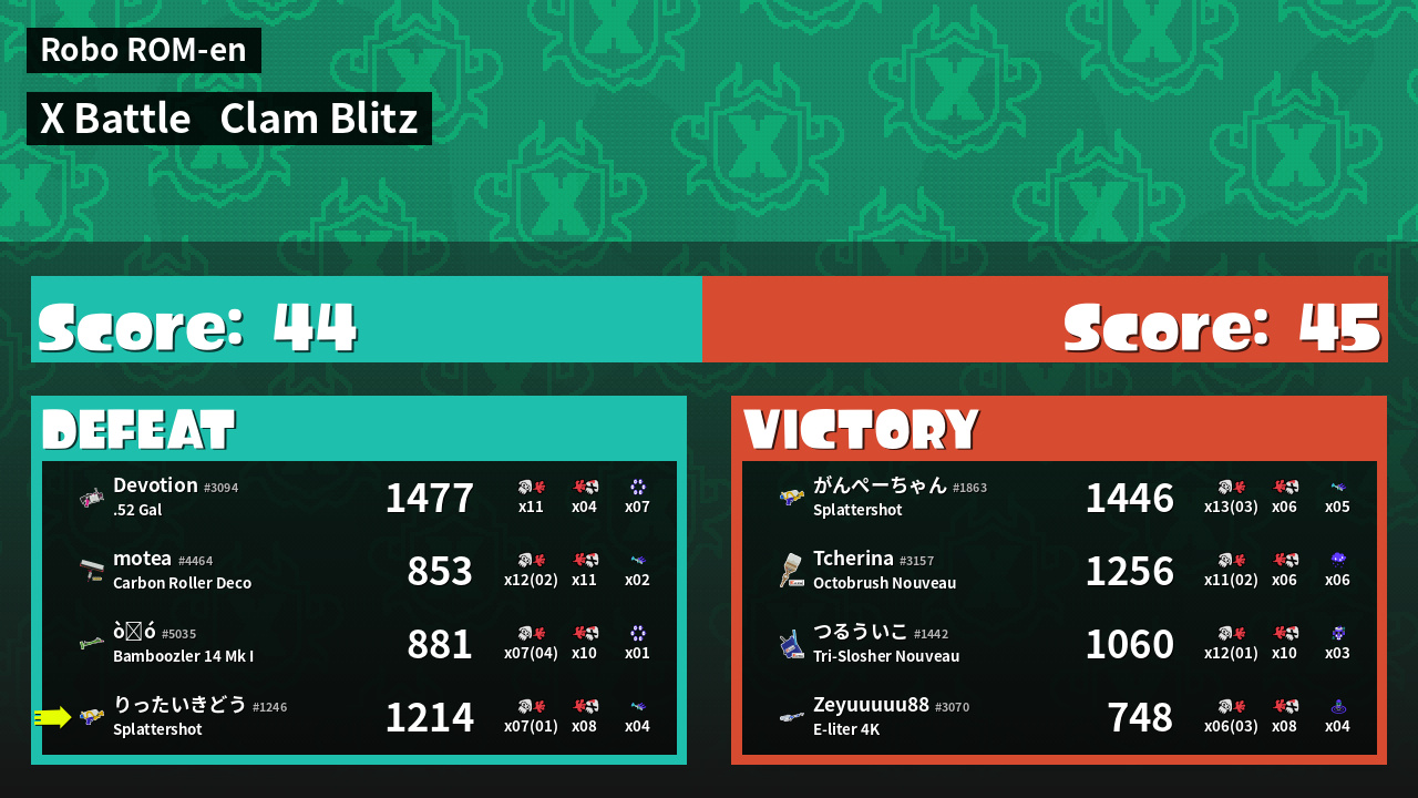 | Mode | Clam Blitz - X Battle | ||