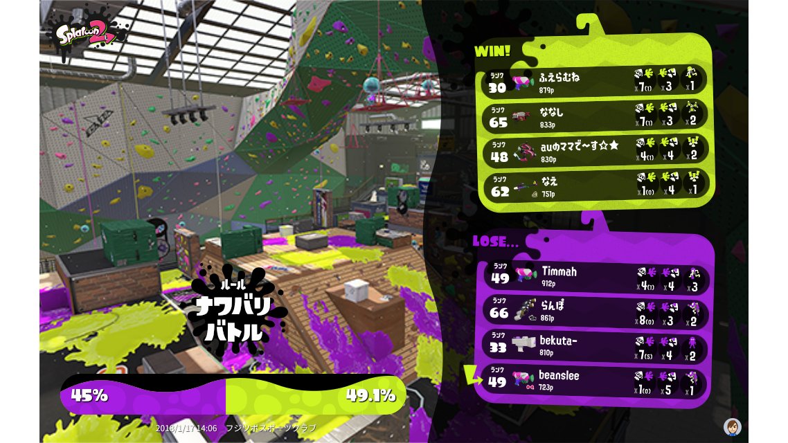 | Mode | Turf War - Regular Battle | |||||||||||||||||||||||||||||||||||||
