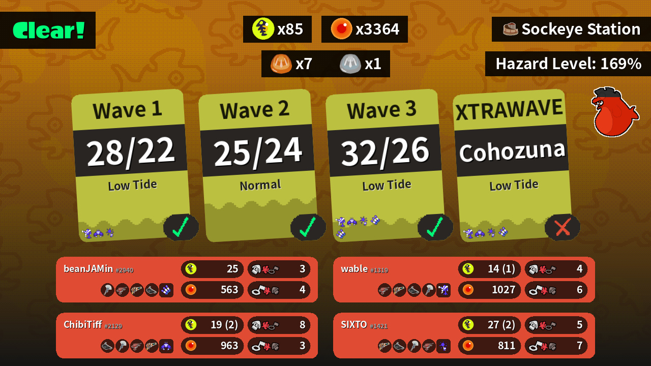 | Weapons | Painbrush Dualie Squelchers Squeezer Bloblobber | Squeezer Bloblobber Painbrush Dualie Squelchers | Bloblobber Painbrush Dualie Squelchers Squeezer | Dualie Squelchers Squeezer Bloblobber Painbrush |