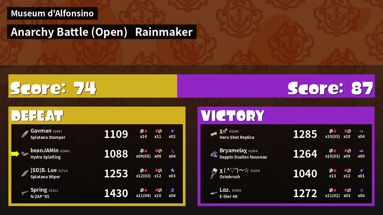 | Mode | Rainmaker - Anarchy Battle (Open) | ||