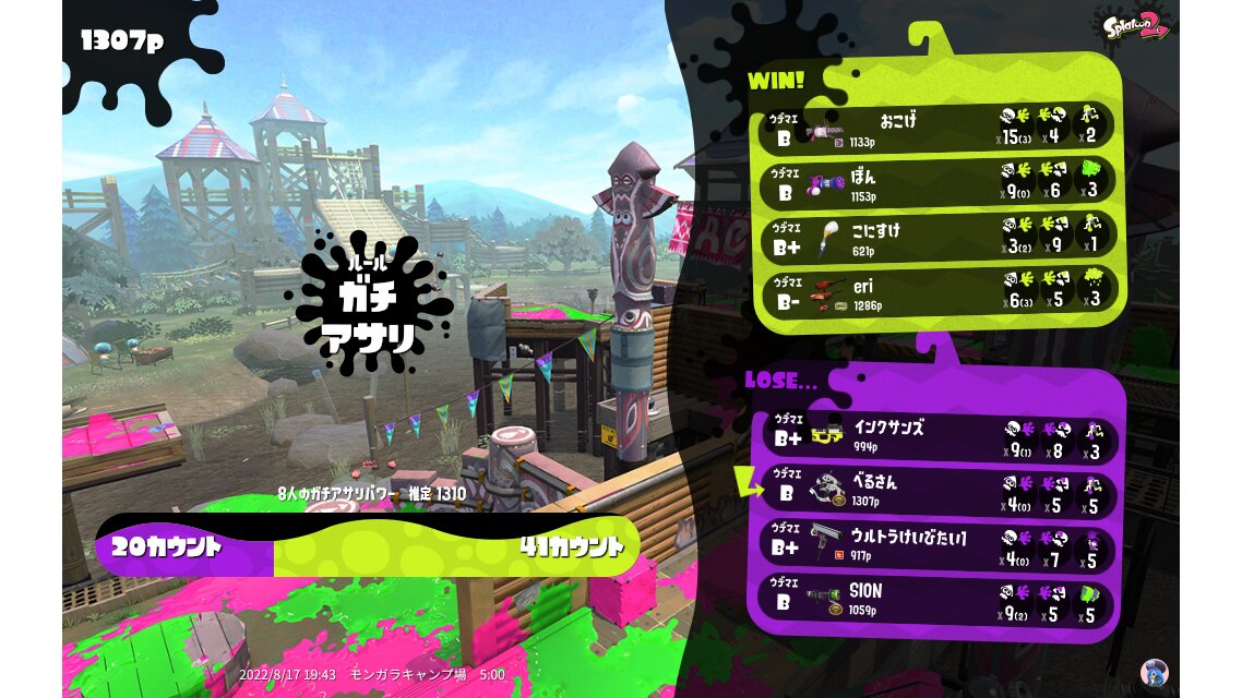 | Name | Weapon | Level | Rank | Inked | k+a/sp | k/d |